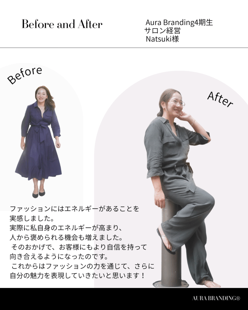 現在は、AuraBranding®講座の主宰と、経営者向けパーソナルスタイリングを中心に活動中。